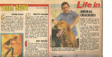 The Star magazine article (1987) got me noticed in grocery store checkout lines! Pressing the last (seventh) cervical vertebra causes dogs to smile.